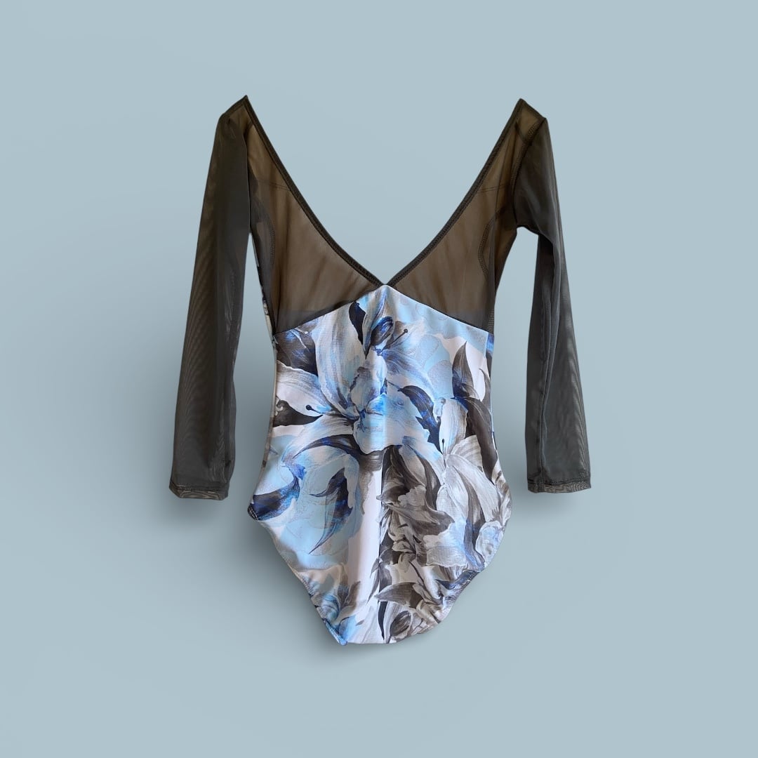 やわらかな筆致で描かれたフラワーモチーフをくすみ感のあるニュアンスカラーで表現したプリント柄。甘さを抑えた配色が可憐さの中に静かな落ち着きを添え大人のバレエウェアとして取り入れやすい一着に仕上げています。