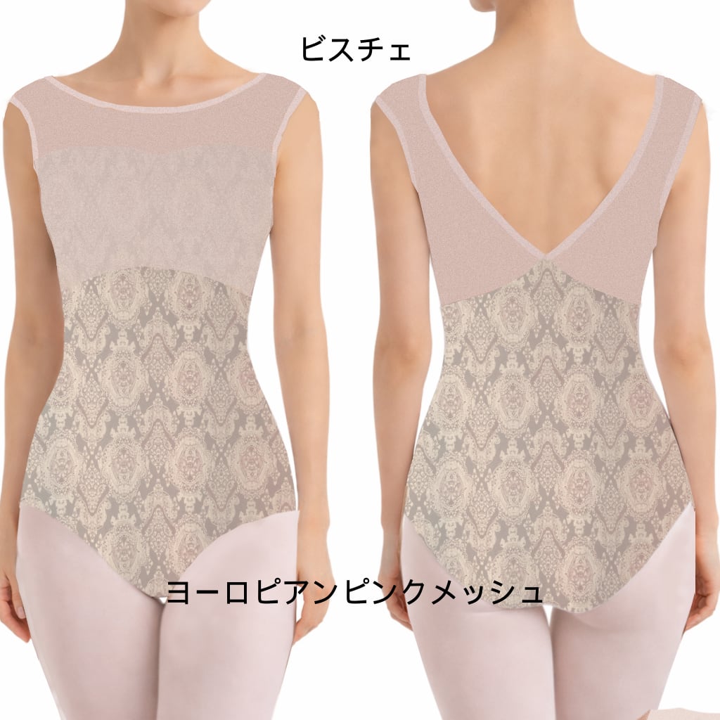 繊細なダマスクモチーフをやわらかな色調で表現したプリント柄です。クラシカルな雰囲気を残しつつ、軽やかで大人のバレエウェアに取り入れやすい印象に仕上がっています。