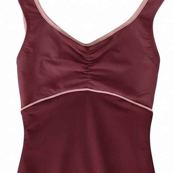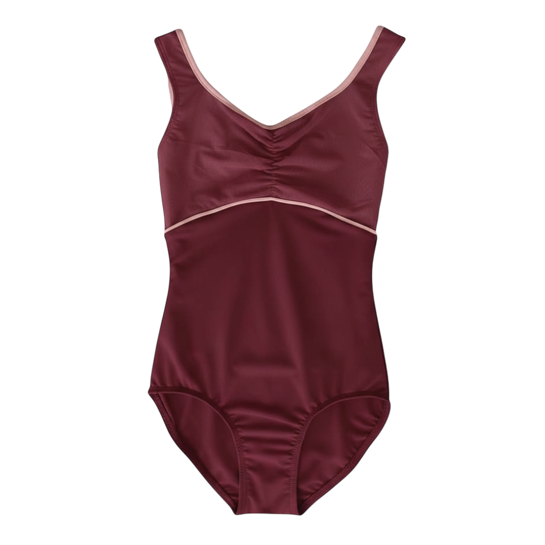 くすみ感のあるニュアンスカラーとメッシュの軽やかな透け感が、身体のラインやデザインを引き立てます。主張しすぎないトーンでまとめているため、日常のレッスンからリハーサルまで幅広く取り入れやすい、大人のための一枚です。