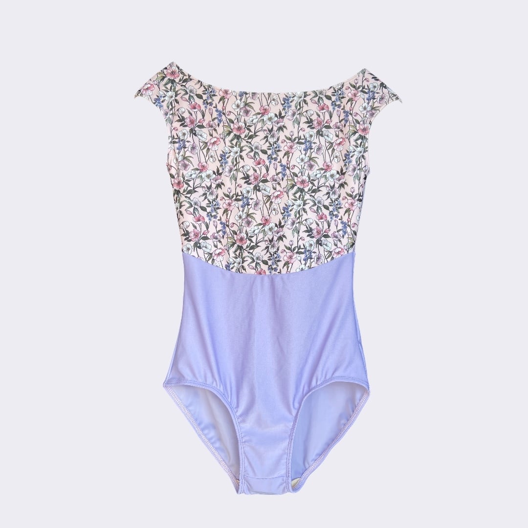 肩をやさしく包むプチフレンチスリーブで季節を問わずレッスンにお使いいただけます。