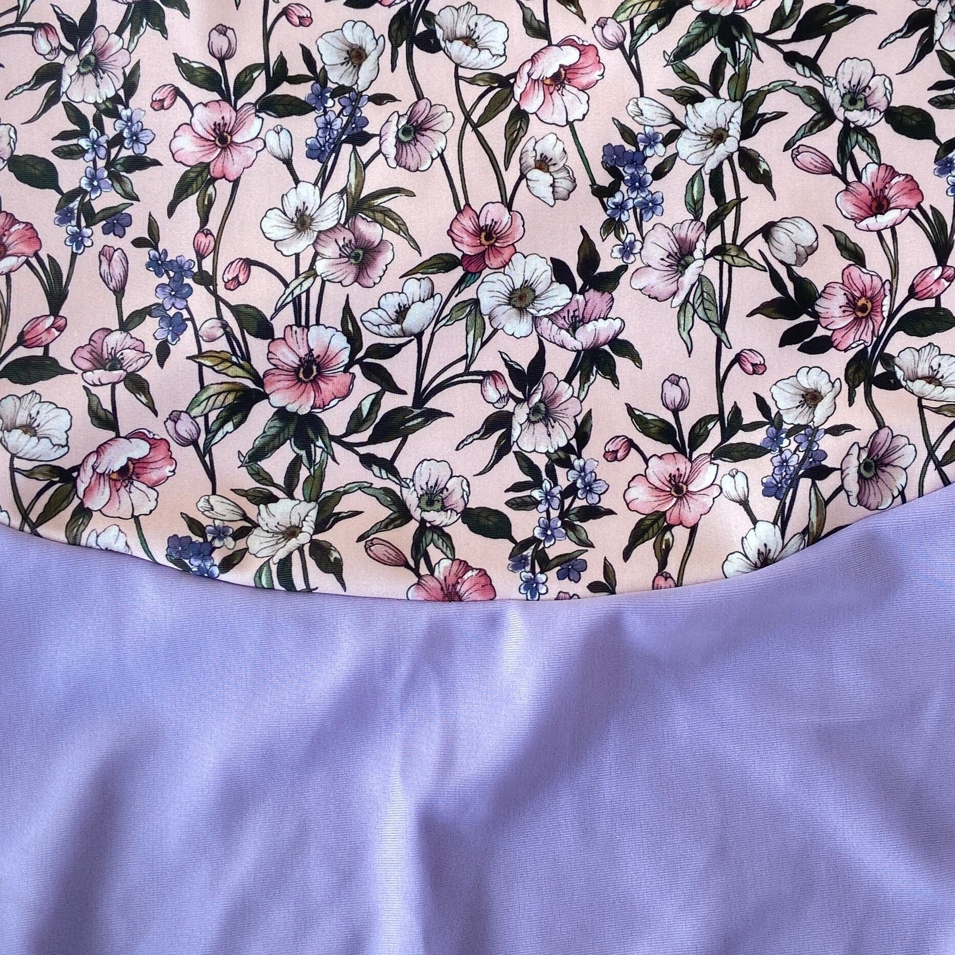 繊細な花柄プリントとライラックの組み合わせが落ち着いた華やかさを演出します。