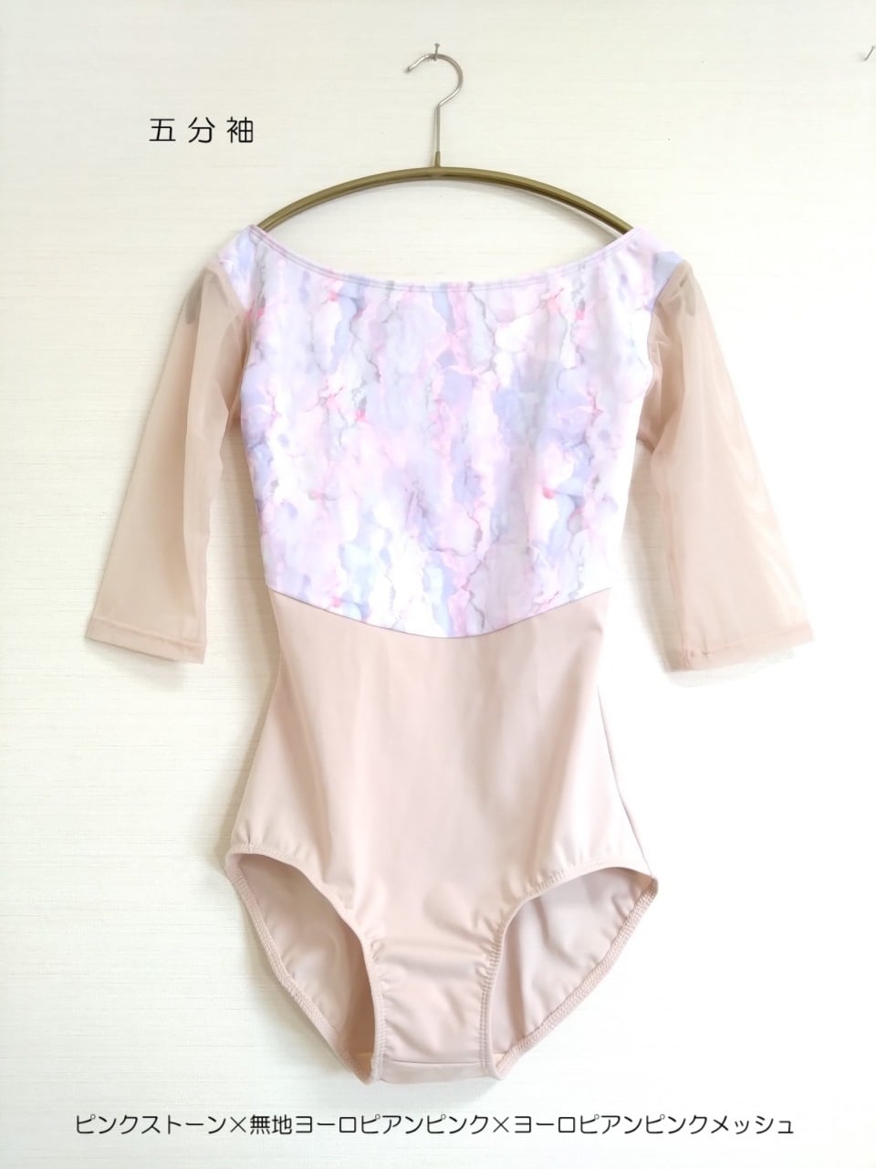 前見ごろ切替上と切替下はプリント生地または無地レオタード生地となります。